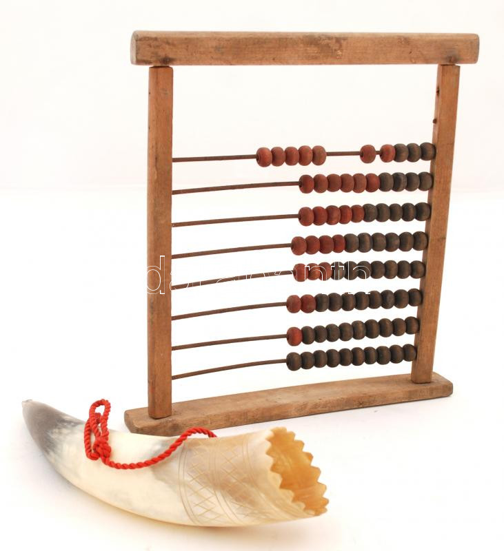 Leírás: Régi, kézi számológép,25x23cm, 2 színt hiányzik, szarú kürt (kis repedéssel)