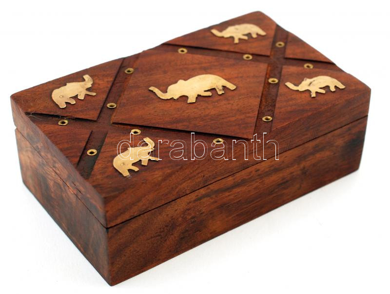 Réz elefántokkal díszített indiai fa dobozka, 12,5×7,5×4,5 cm https://www.darabanth.com/hu/231-Gyorsarveres/231.0/Festmeny-mutargy-papirregiseg-egyeb/Bolhapiac~600010/Rez-elefantokkal-diszitett-indiai-fa-dobozka-12-5C3977-5C3974-5-cm~II1038815