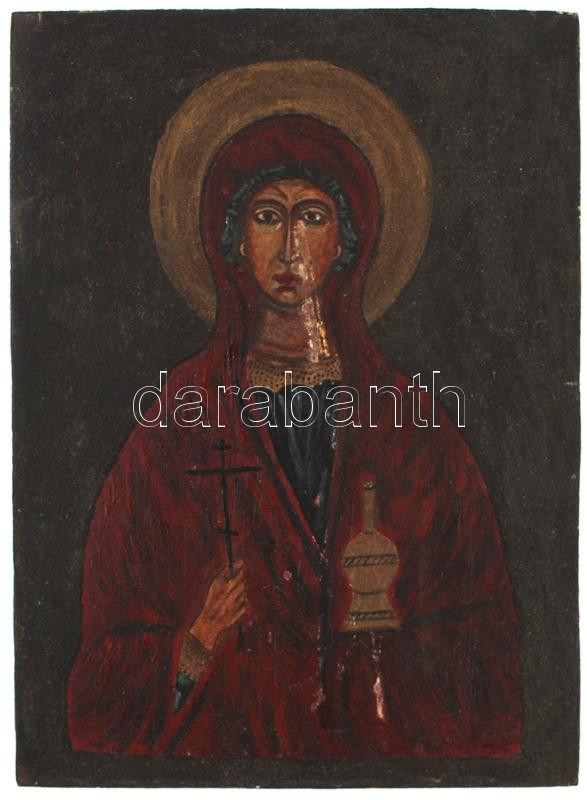 Leírás: Jelzés nélkül: Árpád-házi Szent Erzsébet ikon. Tempera, fa, karcolásokkal, 33×25 cm