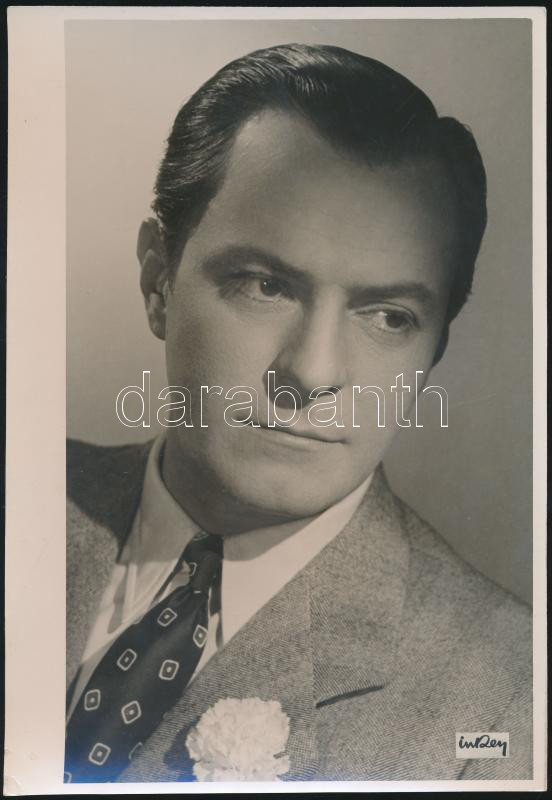 Leírás: cca 1935 Inkey Tibor (1908-1998): Jávor Pál színész (1902-1959) műtermi portréja, matricával jelzett vintage fotóművészeti alkotás, 17x24 cm