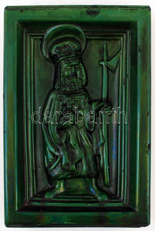 Leírás: Szent László királyt ábrázoló kályhacsempe Rusói István(Karcag) jelzéssel, kisebb sérülésekkel, 37x25 cm