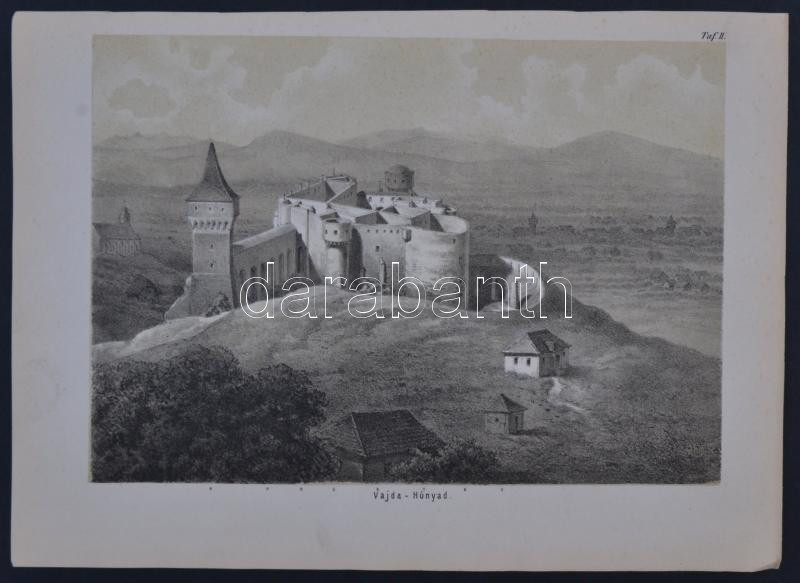 Vajdahunyad vára II. Rézmetszet Arányi Lajos György (1812-1867) orvos, egyetemi tanár "Vajda-Hunyad vára, 1452., 1681., 1866. szóban és képben" című könyvéből (Pozsony, 1867), jelzés nélkül, 18,5×25,5 cm