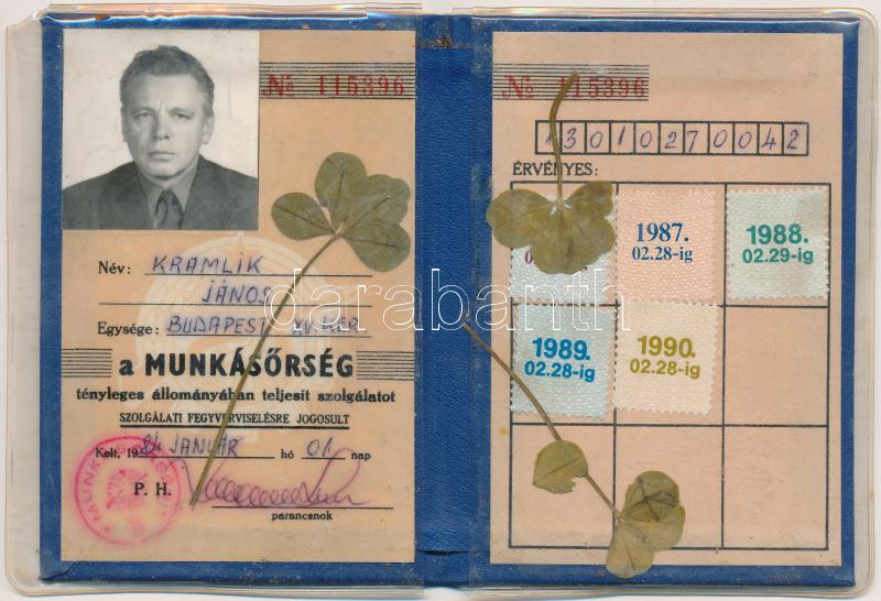 1984 Arcképes Munkásőr igazolvány https://www.darabanth.com/hu/231-Gyorsarveres/231.0/Festmeny-mutargy-papirregiseg-egyeb/Militaria~600025/1984-Arckepes-Munkasor-igazolvany~II1048159