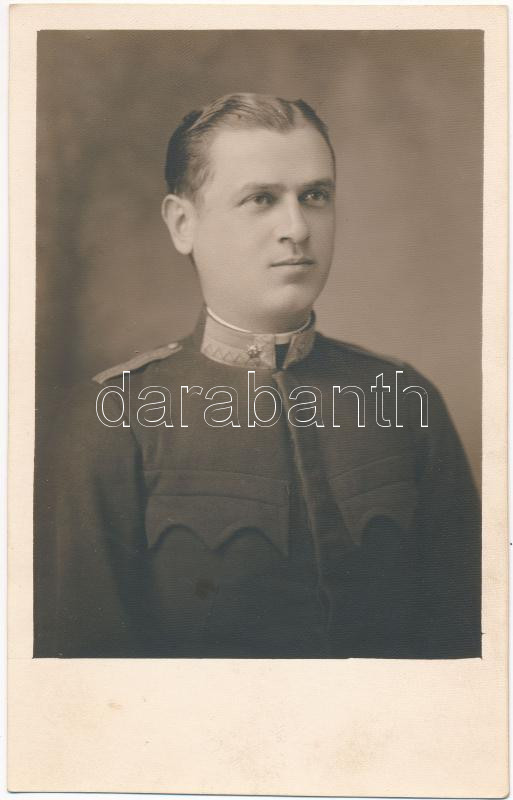 cca 1930-1940 Katonaportré, fotólap, 8x13 cm https://www.darabanth.com/hu/231-Gyorsarveres/231.0/Festmeny-mutargy-papirregiseg-egyeb/Militaria~600025/cca-1930-1940-Katonaportre-fotolap-8x13-cm~II1046035