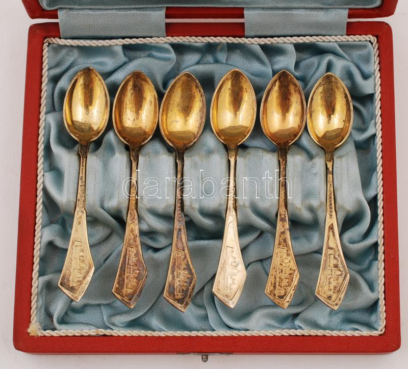Leírás: 6 db-os Budapest ezüst(Ag) kávékanál készlet a Parlament képével díszítve, jelzett, 87,3 g