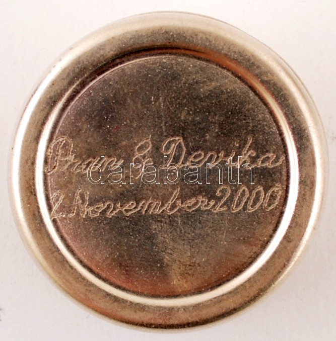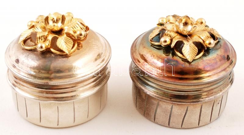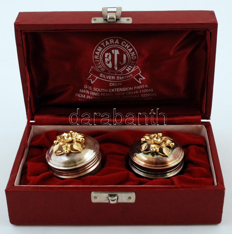 Házassági ajándék: Ezüst fűszertartó pár, aranyozott ezüst dísszel, díszdobozban, alján gravírozással / Silver spice holder pair in special case. Indian wedding gift.