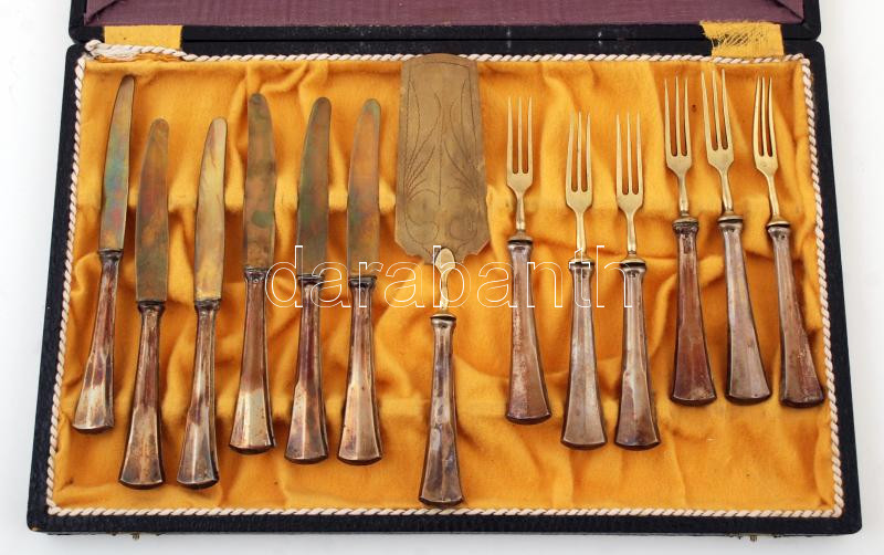 cca 1950 Desszertes evőeszközkészlet torta lapáttal, ezüst nyéllel, je... https://www.darabanth.com/hu/231-Gyorsarveres/231.0/Festmeny-mutargy-papirregiseg-egyeb/Nemesfem-Disztargyak-Orak-es-Ekszerek~600042/cca-1950-Desszertes-evoeszkozkeszlet-torta-lapattal-ezust-nyellel-jelzett-Ag-br321-gr-~II1044853