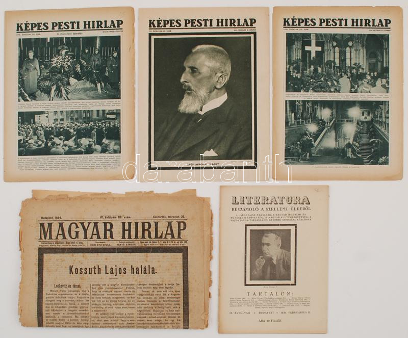1894-1936 Képes Pesti Hírlap 2 szám, Magyar Hírlap 1 szám, Literatura 1 szám: Halotti beszámolok: Kossuth Lajos, Gömbös Gyula, Apponyi Albert, Móra Ferenc