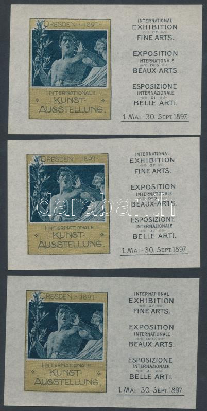 Leírás: 1897 A Drezdai Nemzetközi Művészeti Kiállítás kisméretű reklámcédulái, 3 db, 12x8 cm /