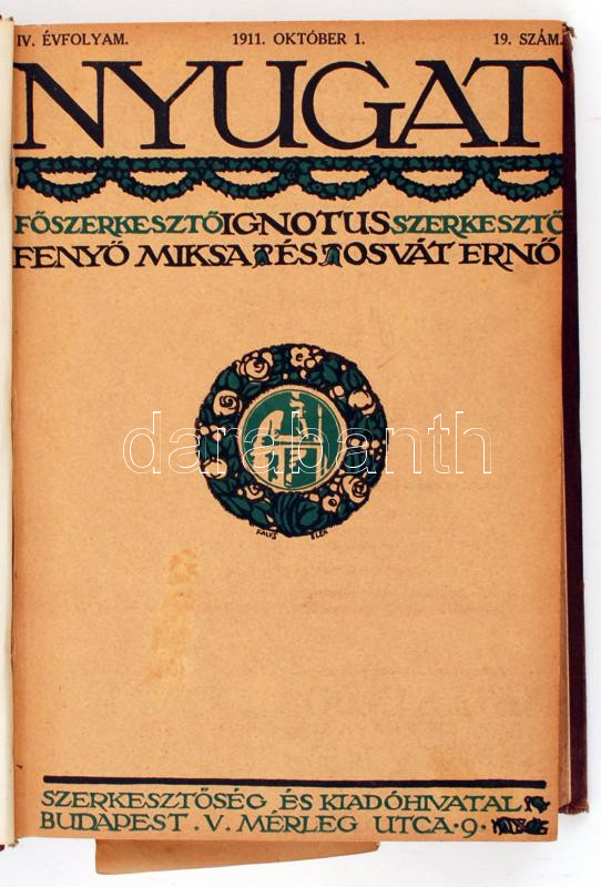 1911 A Nyugat című folyóirat IV. évfolyamának 19-24. száma egybe kötve... https://www.darabanth.com/hu/231-Gyorsarveres/231.0/Festmeny-mutargy-papirregiseg-egyeb/Nyomtatvanyok~600027/1911-A-Nyugat-cimu-folyoirat-IV-evfolyamanak-19-24-szama-egybe-kotve-konyv-formatumban-e~II1047915