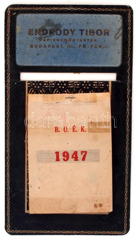 Leírás: 1947 Bp. III., Endrődy Tibor papírneműgyártás újévi papír falinaptára