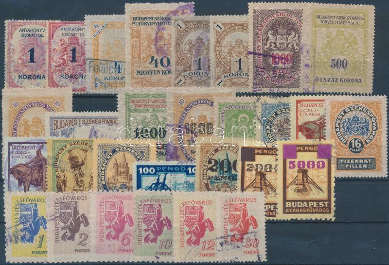 Leírás: 29 db budapesti okmánybélyeg (42.000)