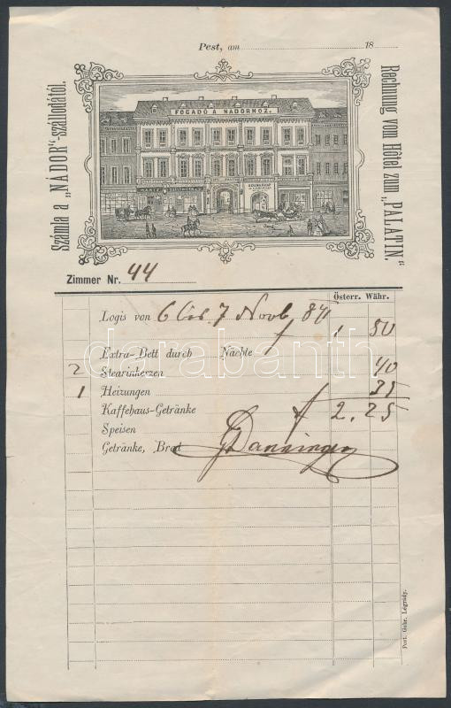 cca 1850-1860 Bp.V. Váci utca, A Nádor Szálloda díszes fejléces számlá... https://www.darabanth.com/hu/231-Gyorsarveres/231.0/Festmeny-mutargy-papirregiseg-egyeb/Okmanyok~600015/cca-1850-1860-BpV-Vaci-utca-A-Nador-Szalloda-diszes-fejleces-szamlaja~II1041005