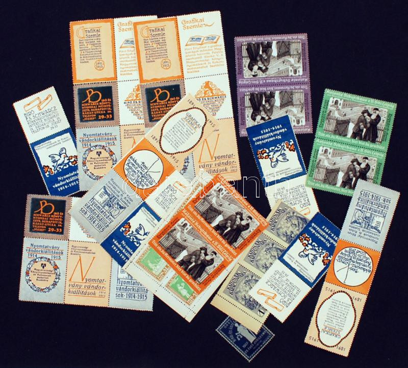 1914-1925 A Grafikai Szemle, Nyomtatvány vándorkiállítások, Bíró és Schwarz Könyvnyomdai Műintézete, Magyar Nemzeti Múzeum Jókai Kiállítása, stb. levélzárók, 47 db