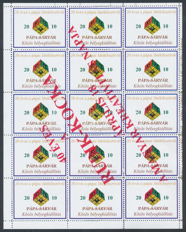 2014 "40 éves a Rubik-kocka - Április 18. A magyar kreativitás napja" felülnyomattal ellátott 2010 Pápa-Sárvár bélyegkiállítás tiszteletére kiadott levélzáró kisív
