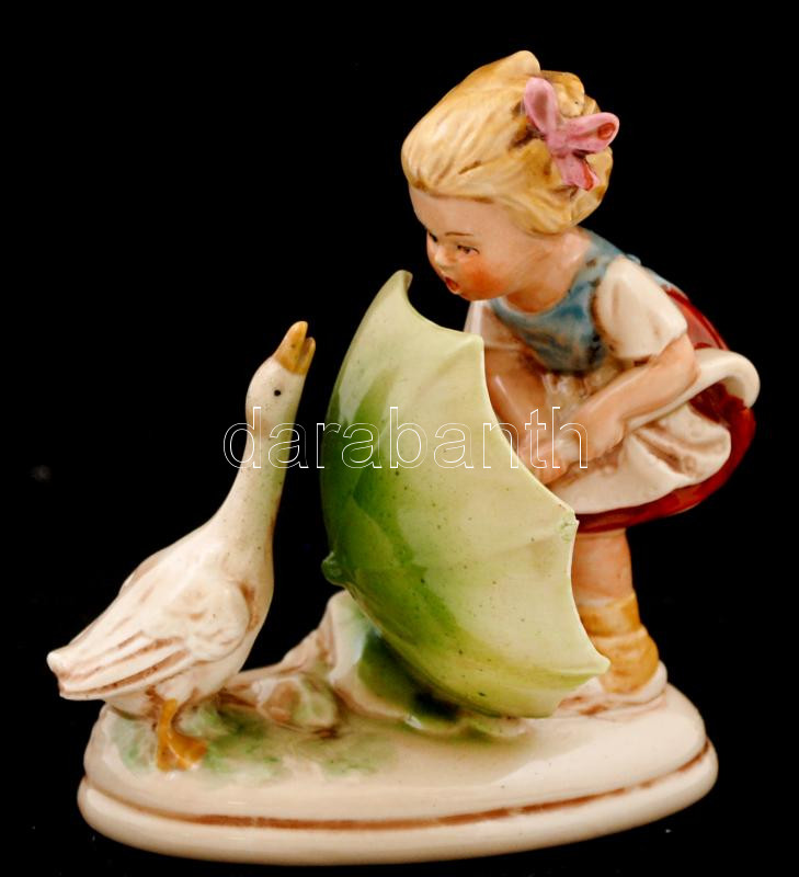 Leírás: Carl Schneiders Erben kislány a libával, kézzel festett, jelzés nélkül, hibátlan, m:12 cm