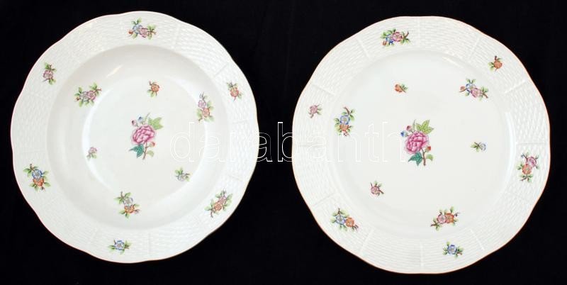 Leírás: Herendi Eton mintás lapos és mély tányér, kézzel festett, jelzett, hibátlan, d:24 és 25 cm