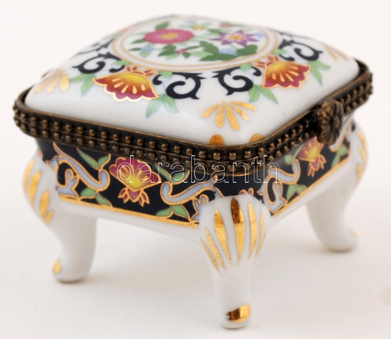 Leírás: Limoges virág mintás dobozka, levonóképes, jelzett, hibátlan, réz szerelékkel / Limoges china box 6x6 cm