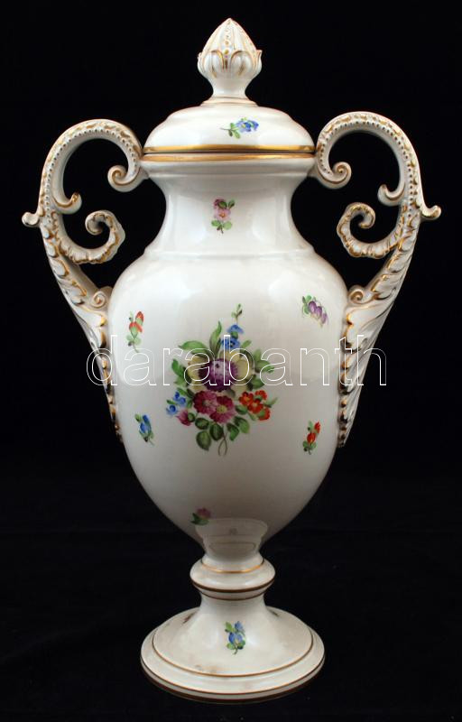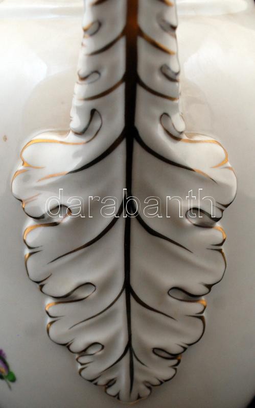 Leírás: Virágmintás Herendi porcelán fedeles urna, kézzel festett, jelzett, apró kopásnyomokkal, m: 37 cm cm