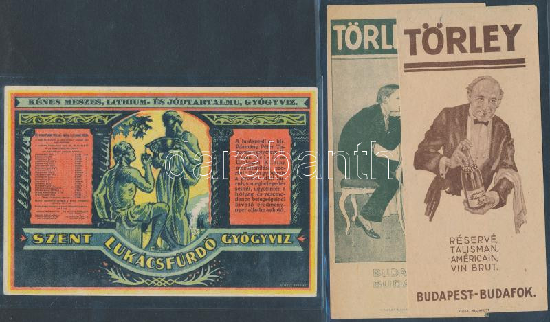 3 db régi számolócédula (Szent Lukácsfürdő Gyógyvíz, Törley Budapest, ... https://www.darabanth.com/hu/231-Gyorsarveres/231.0/Festmeny-mutargy-papirregiseg-egyeb/Reklam~600020/3-db-regi-szamolocedula-Szent-Lukacsfurdo-Gyogyviz-Torley-Budapest-2-db~II1047705