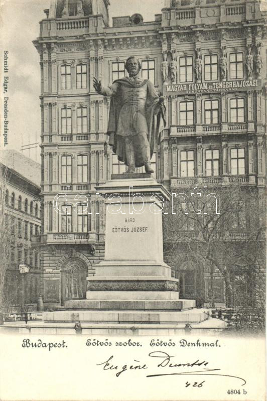 Leírás: Budapest V. Eötvös szobor, Magyar Folyam és Tengerhajózási Részvénytársaság (EK)