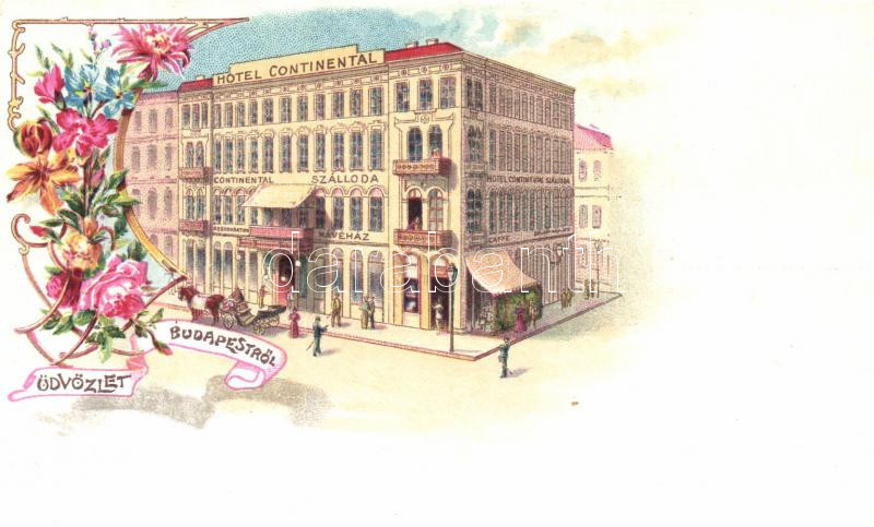 Budapest V. Hotel Continental szálloda, floral litho (levágott / cut) https://www.darabanth.com/hu/231-Gyorsarveres/231.0/Kepeslapok/Magyarorszag~5/Budapest-V-Hotel-Continental-szalloda-floral-litho-levagott-cut~II1043319