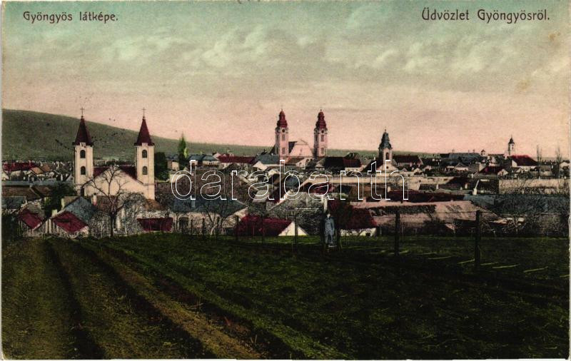 Leírás: Gyöngyös, Látkép; Adler Zsigmond kiadása helyben (levágott / cut)