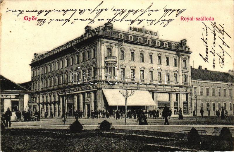 Győr, Meixner-Royal szálloda, Fehérhajó szálloda; Blum József kiadása https://www.darabanth.com/hu/231-Gyorsarveres/231.0/Kepeslapok/Magyarorszag~5/Gyor-Meixner-Royal-szalloda-Feherhajo-szalloda-Blum-Jozsef-kiadasa~II1047130