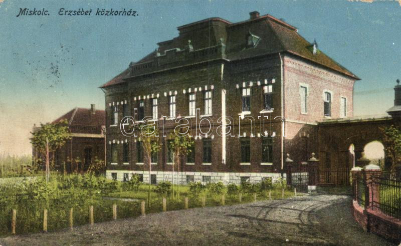Miskolc, Erzsébet közkórház https://www.darabanth.com/hu/231-Gyorsarveres/231.0/Kepeslapok/Magyarorszag~5/Miskolc-Erzsebet-kozkorhaz~II1044302