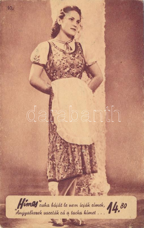 'Hímes' ruha reklám, Magyar Divatcsarnok, Budapest VII. Rákóczi út 70-... https://www.darabanth.com/hu/231-Gyorsarveres/231.0/Kepeslapok/Reklam~600111/Himes-ruha-reklam-Magyar-Divatcsarnok-Budapest-VII-Rakoczi-ut-70-76-Hungarian-dress-adv~II1048516