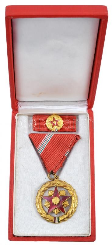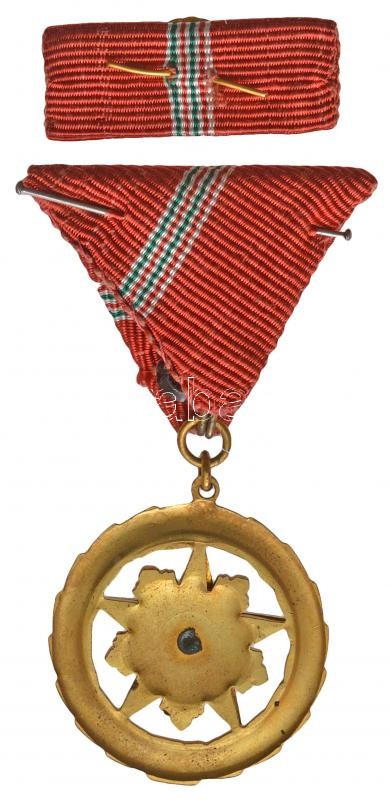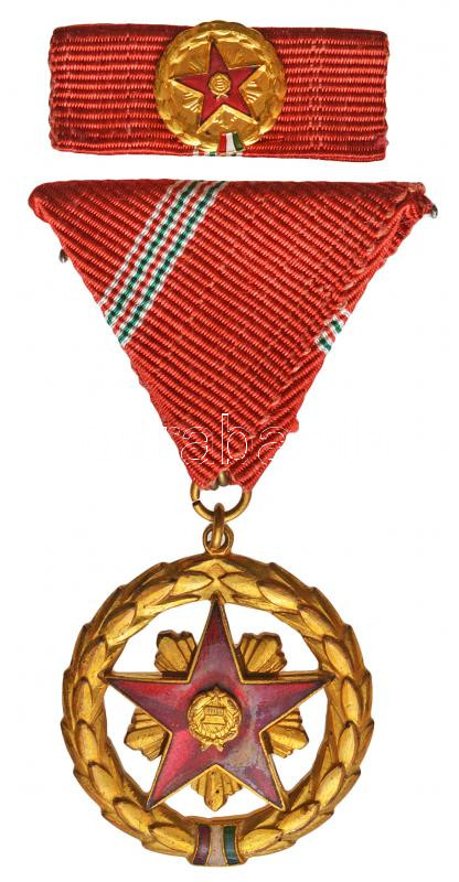 Leírás: 1957. "Szocialista Munkáért Érdemérem" aranyozott, zománcozott Br kitüntetés mellszalagon, szalagsávval, miniatűrrel nem saját tokban T:2