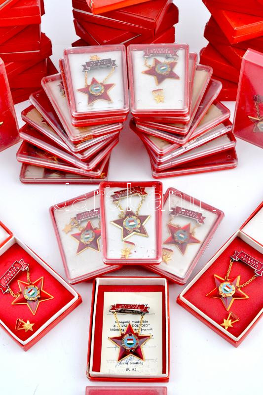 Leírás: ~1960-1970. 45db "Kiváló Dolgozó" zománcozott fém jelvény, több miniatűrrel együtt, tokokban T:vegyes
