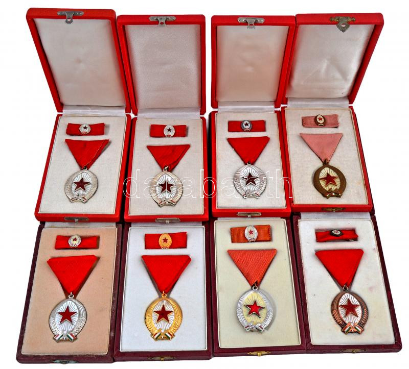 Leírás: ~1960-1980. 8db "Munka Érdemrend" kitüntetés, arany, ezüst és bronz fokozatok, mindegyik tokban T:2,2-