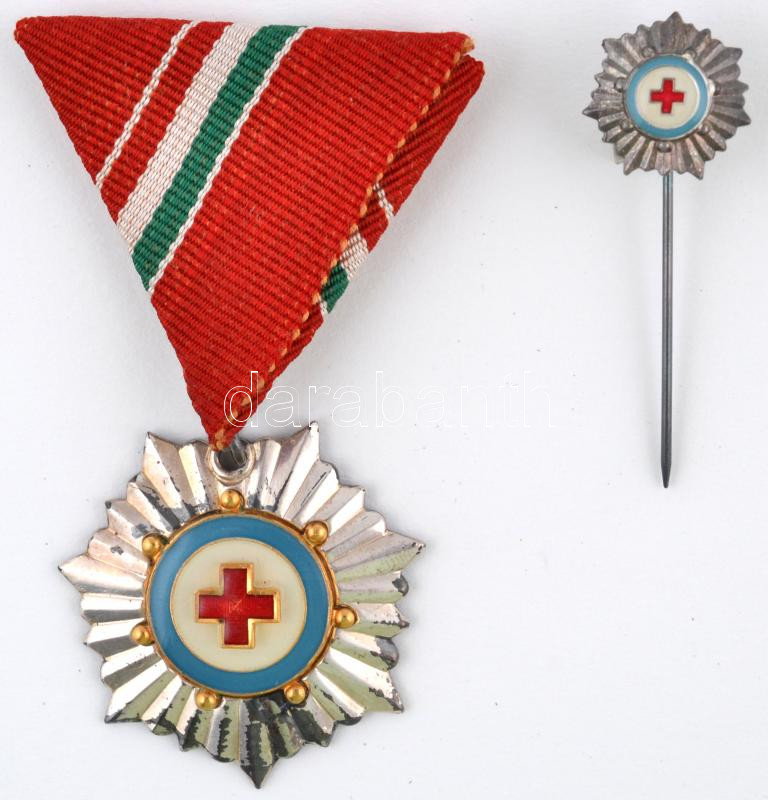 Leírás: ~1975. "Vöröskeresztes Munkáért" ezüst fokozata mellszalagon, miniatűrrel, nem saját tokban T:2