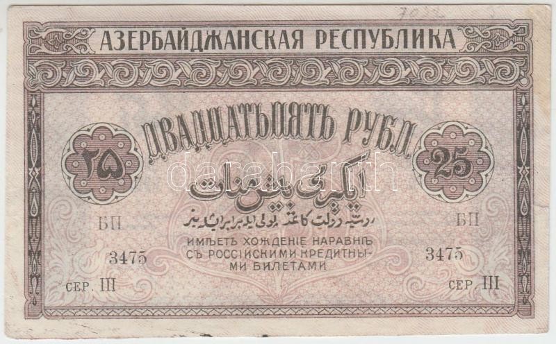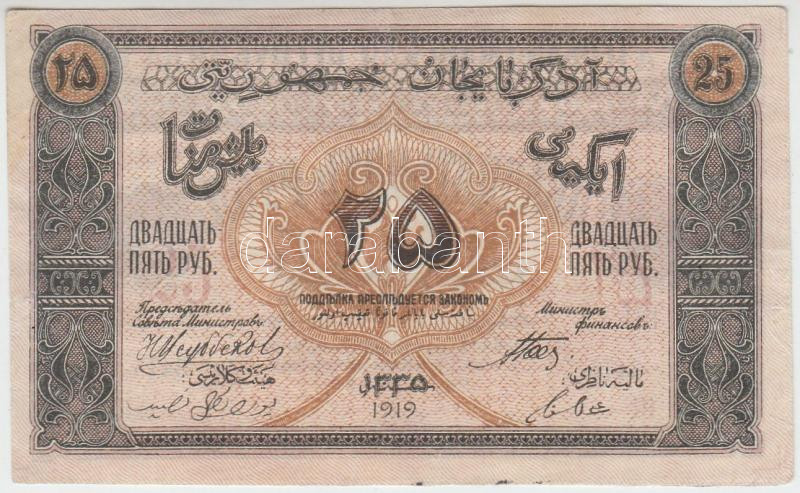 Azerbaijan 1919. 25 Rubles C:F https://www.darabanth.com/hu/231-Gyorsarveres/231.0/Numizmatika/Kulfoldi-bankjegyek~400010/Azerbajdzsan-1919-25R-TIII-3Cbr3EAzerbaijan-1919-25-Rubles-CF~II1039254