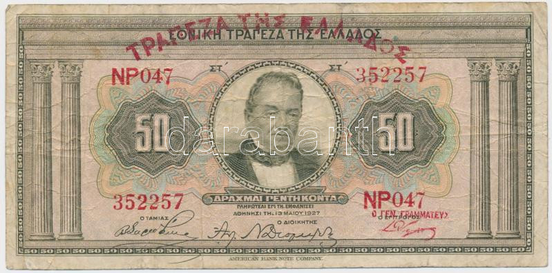 Leírás: Görögország 1927. (1928) 50Dr "Görögország Bankja" felülbélyegzéssel T:III-