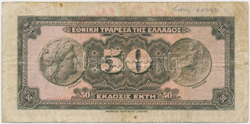 Görögország 1927. (1928) 50Dr "Görögország Bankja" felülbélyegzéssel T... https://www.darabanth.com/hu/231-Gyorsarveres/231.0/Numizmatika/Kulfoldi-bankjegyek~400010/Gorogorszag-1927-1928-50Dr-Gorogorszag-Bankja-felulbelyegzessel-TIII--3Cbr3EGreece-192~II1044177
