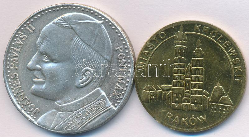 Lengyelország 1979. "II. János Pál Pápa / 1979. évi lengyelországi látogatása" fém emlékérem (35mm) + 2005. "Cracovia 2005 / Krakkó a Szent Város" fém emlékérem (30mm) T:2