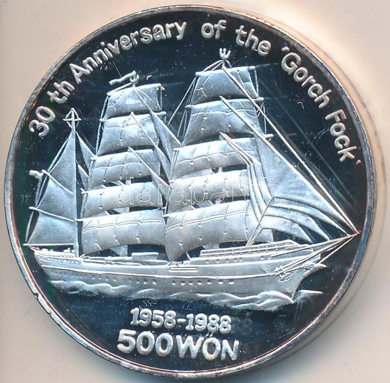 Leírás: Észak-Korea 1988. 500W Ag "Gorch Fock 30 éves" T:PP