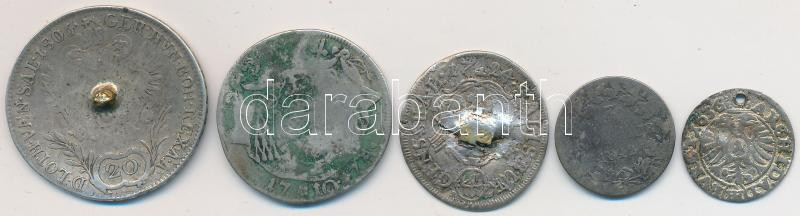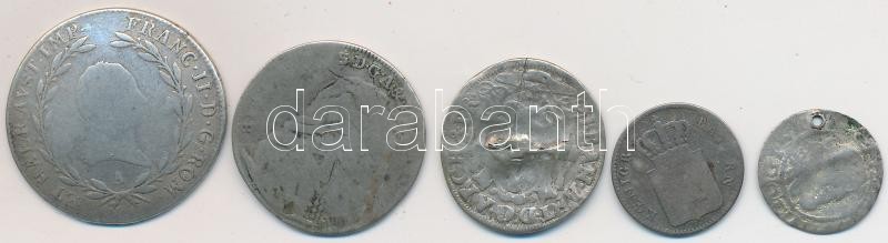 Vegyes: ~1600-1800. 5db vegyes ezüstpénz, közte Ausztria 1806A 20kr Ag "II. Ferenc" hátlapon forrasztásnyom T:3,3-