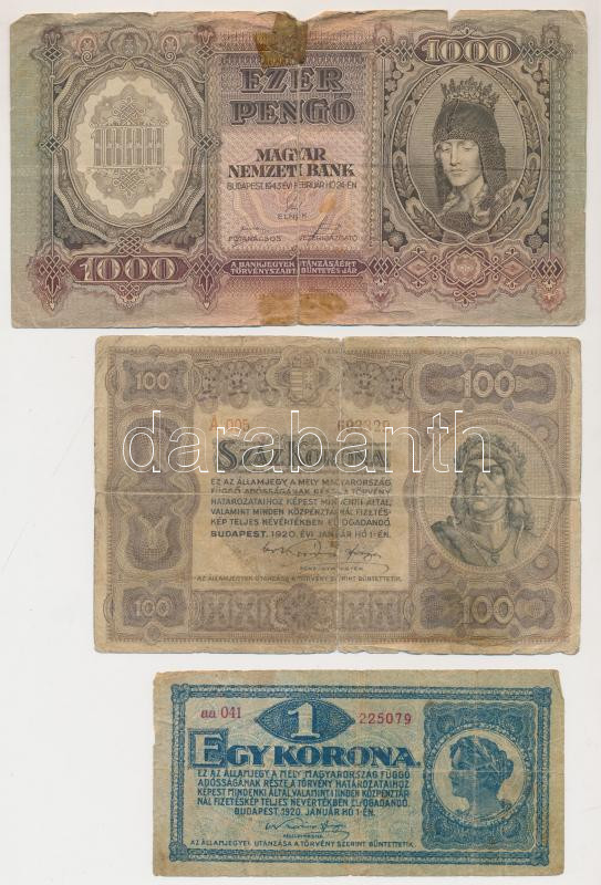 15db vegyes korona bankjegy, közte egy 1943. 1000P T:III,III-,IV https://www.darabanth.com/hu/231-Gyorsarveres/231.0/Numizmatika/Magyar-bankjegyek~400007/15db-vegyes-korona-bankjegy-kozte-egy-1943-1000P-TIII-III-IV~II1020724