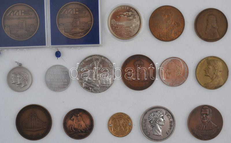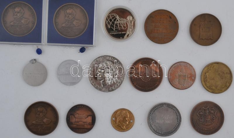 16db vegyes magyar és külföldi emlékérem, közte 1988. "200 éve született Kisfaludy Károly 1788-1988 / Bizton nézzen előre szemünk. Radnóti Társaság Győr" Br emékérem. Szign.:LT (43mm), 1993. "Bozó Gyula 80 éves" Br emlékérem (42,5mm) T:vegyes