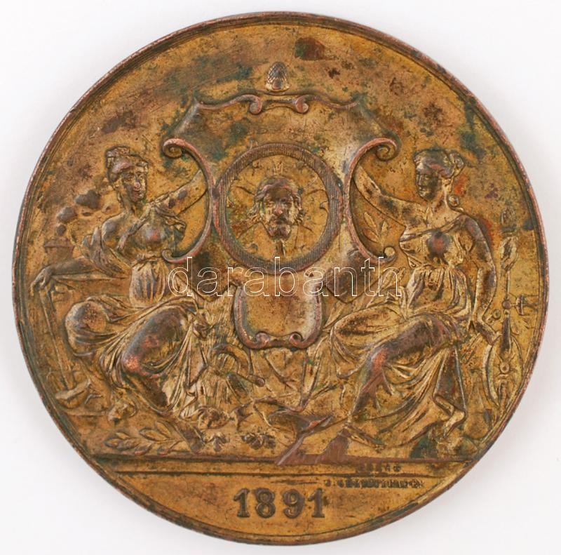 Leírás: 1891. "A Nagyszombati Gazdasági Egyesülete - Az Érdemnek - 1891" aranyozott Br emlékérem. Szign.: J. Christlbauer (60mm) T:2- aranyozás kopott