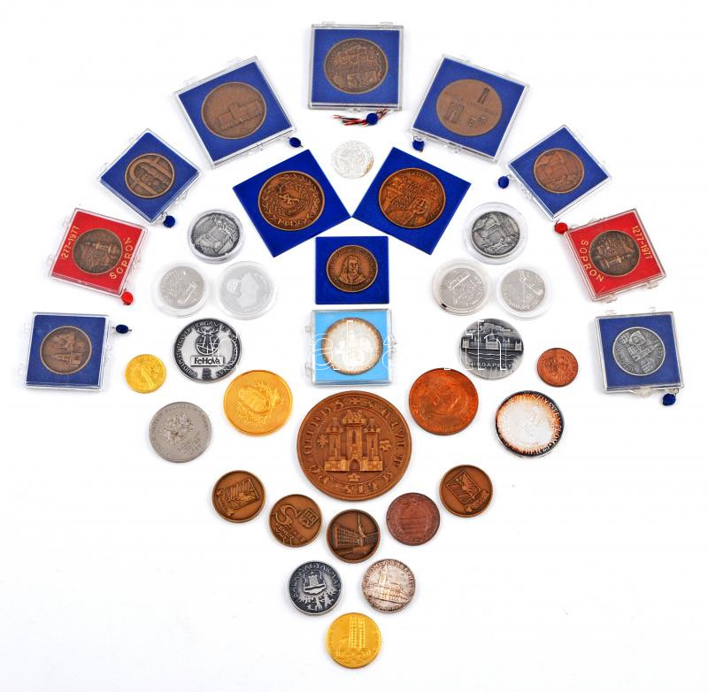 Leírás: 37db vegyes magyar városi emlékérem, közte több plombált "ÁPV" tokban T:vegyes