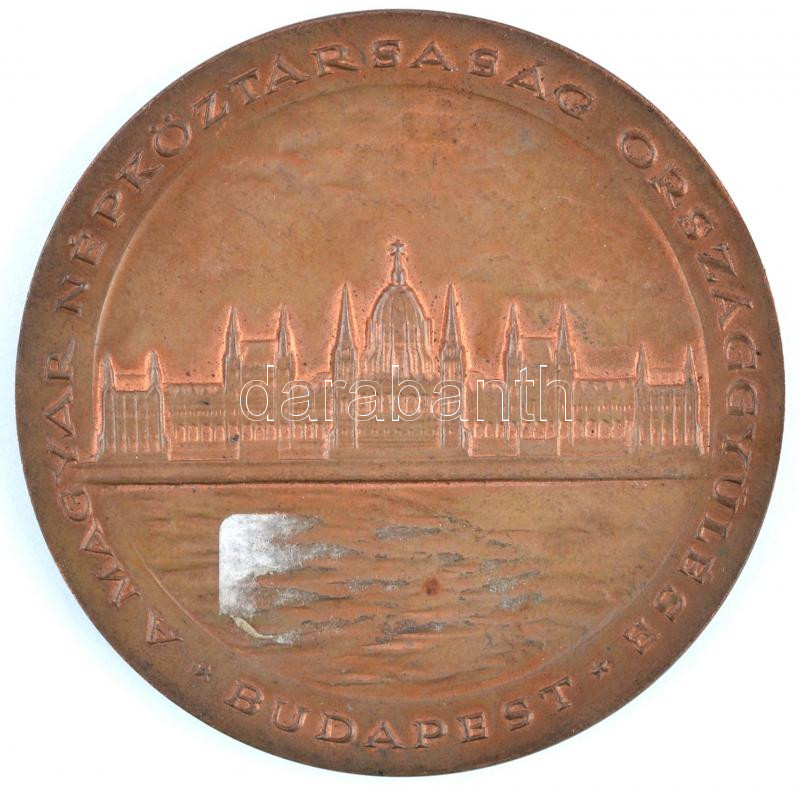 Leírás: Andrássy Kurta János (1911-2008) DN "A Magyar Népköztársaság Országgyűlése Budapest" Br emlékérem (71mm) T:2 ragasztásnyom