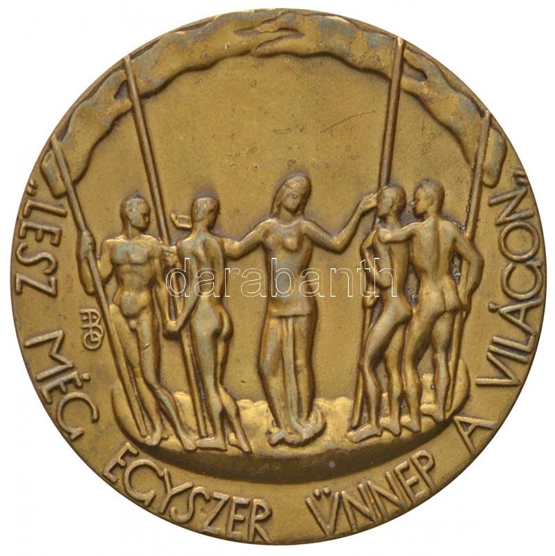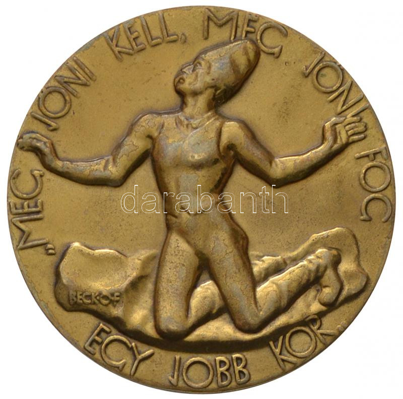 Leírás: Beck Ötvös Fülöp (1873-1945) DN "Még jőni kell, még jőni fog egy jobb kor / Lesz még egyszer ünnep a világon" fém emlékérem (60mm) T:2