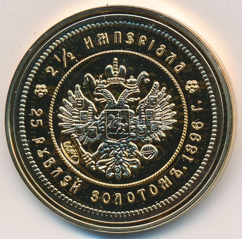 Leírás: DN "Történelmi aranypénzek - II. Miklós 1896. 25 Rubel" aranyozott rézötvözet utánveret "COPY" beütéssel T:PP