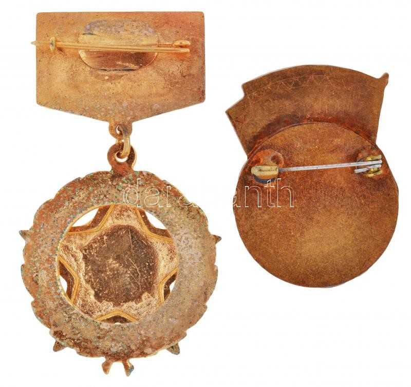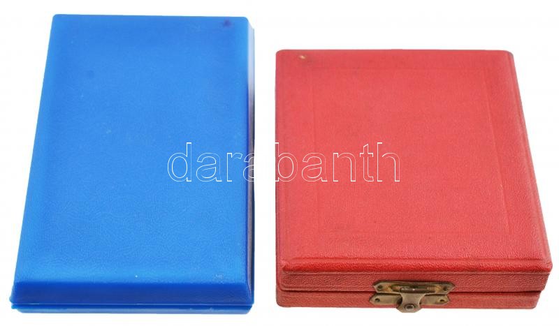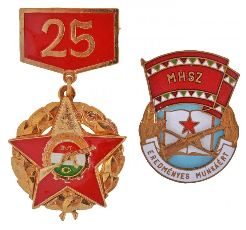 Leírás: ~1970. "Munkásőr - 25 év" aranyozott, zománcozott jelvény eredeti, de sérült dísztokban + "MHSZ Eredményes Munkáért" zománcozott kitüntető jelvény nem eredeti dísztokban T:1-,2
