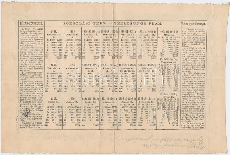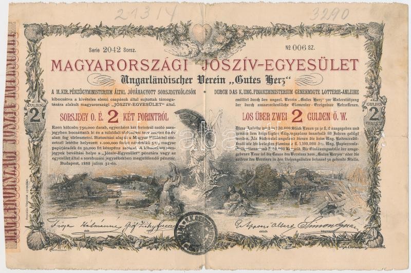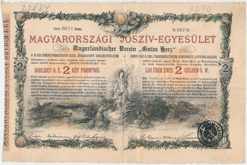 Leírás: Budapest 1888. "Magyarországi Jószív Egyesület" sorsjegye 2Ft-ról (3x) mindegyik felülbélyegzett T:III