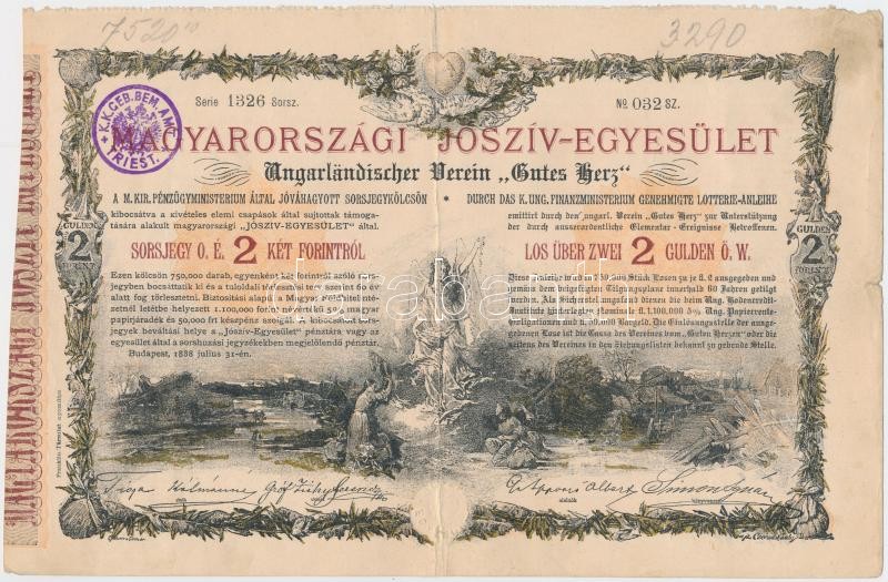 Budapest 1888. "Magyarországi Jószív Egyesület" sorsjegye 2Ft-ról (3x)... https://www.darabanth.com/hu/231-Gyorsarveres/231.0/Numizmatika/Reszvenyek-es-sorsjegyek~400005/Budapest-1888-Magyarorszagi-Josziv-Egyesulet-sorsjegye-2Ft-rol-3x-mindegyik-felulbelyegz~II1044149